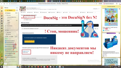 На нашу электронку пришло письмо якобы от сервиса DocuSig. (без буквы N в конце).